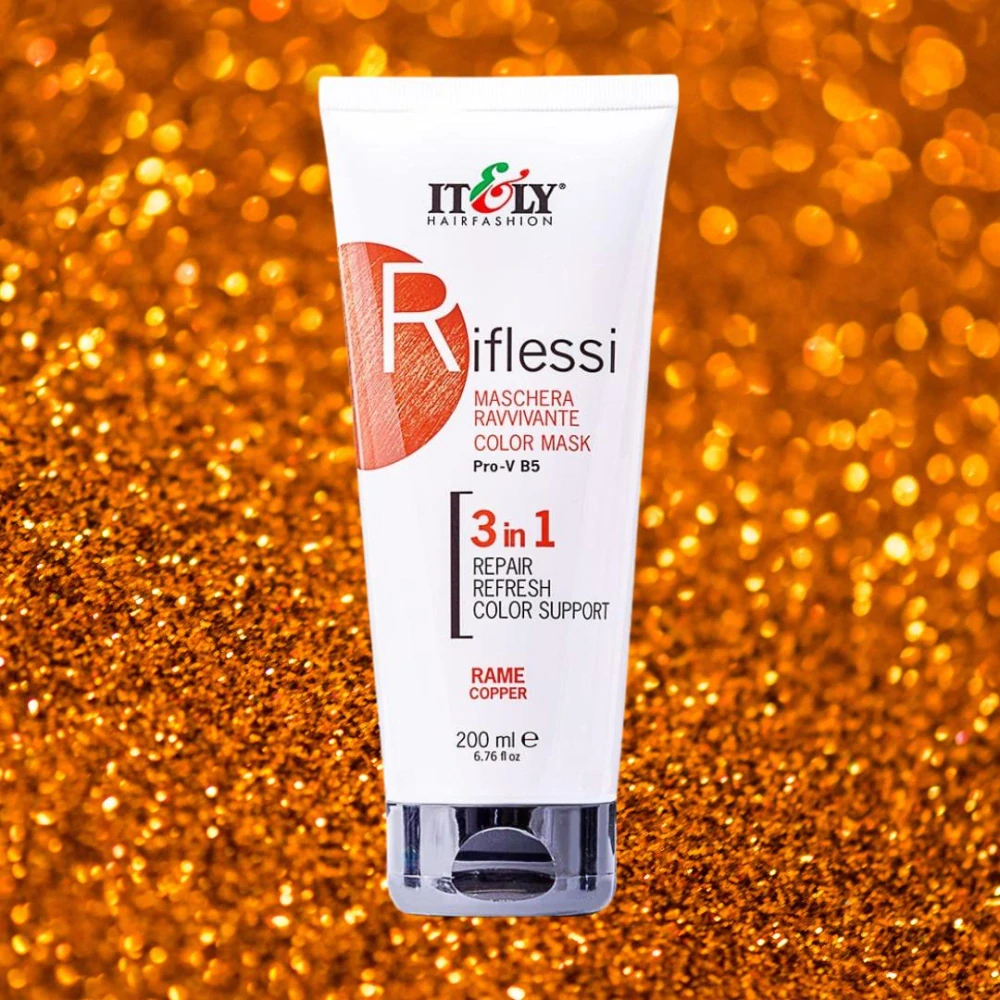 RIFLESSI je mimořádný produkt, který mohou kadeřníci používat bez omezení. Riflessi je exkluzivní kondicionační a regenerační maska založená na trojitém účinku Pro-V B5. Je k dispozici v devíti módních odstínech ve vonném kondicionéru vhodném pro všechny typy vlasů a všechny potřeby. Riflessi je mimořádný produkt, který mohou kadeřníci používat bez omezení.